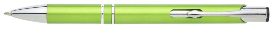 Plastové propisovací pero OIRA - ve světle zelené barvě. Pero je zdobené dvěma stříbrnými proužky. Na těle je zdobeno oválným výřezem. Pero má náplň velkoobsahovou, modře píšící.