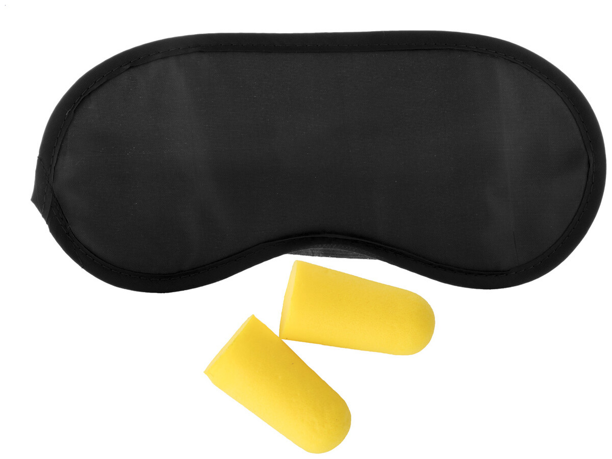 Cestovní sada s maskou na oči z mikrovlákna a špunty do uší z materiálu EVA.
