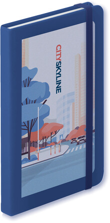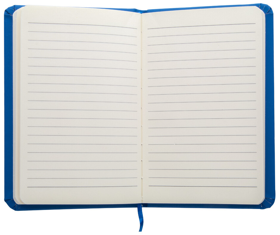 Blok s deskami z PU kůže, se 100 linkovanými listy, záložkou a gumičkou. Velikost A6.