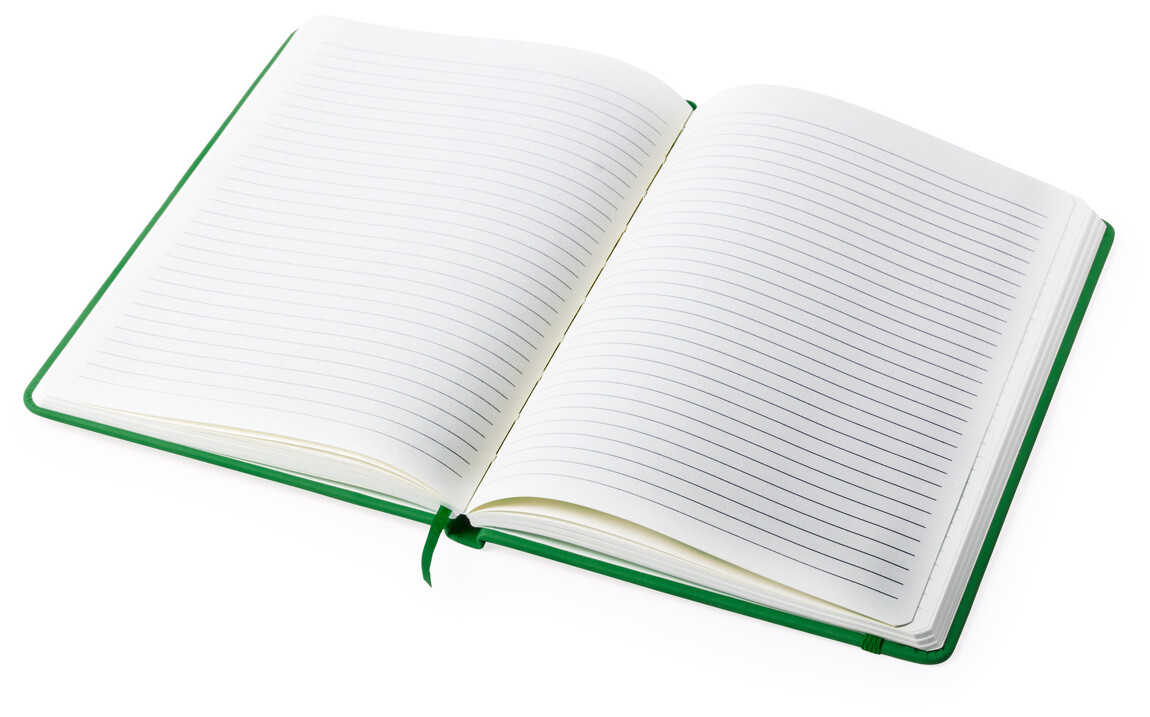 Blok s deskami z PU kůže, se 100 linkovanými listy a gumičkou.