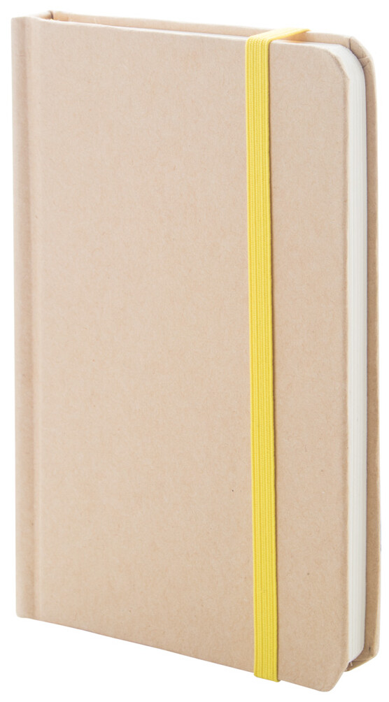 Blok s deskami potaženými recyklovaným kartonem se 100 čistými listy, barevnou záložkou a gumičkou.