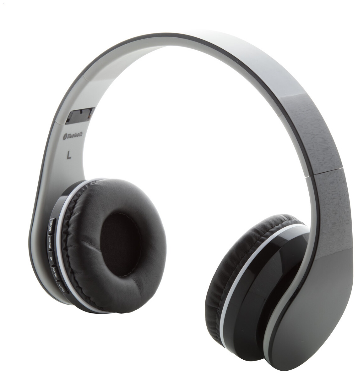 Skládací plastová bezdrátová sluchátka s vestavěnou dobíjecí baterií. S funkcí hands-free volání a přehrávání MP3 z micro SD. Včetně 3,5 mm audio konektoru a nabíjecího kabelu USB.