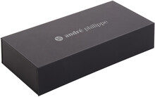 Elegantní sada kovového kuličkového pera a rolleru s tělem v růžovém dřevu. V dárkové krabičce z PU kůže a s modrou náplní. Značkový produkt André Philippe.