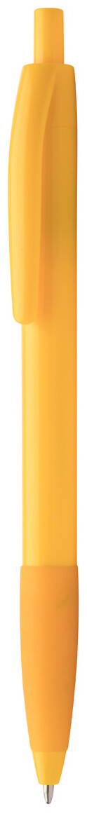 Plastové kuličkové pero se stejně barevným gumovým úchopem, s modrou náplní.