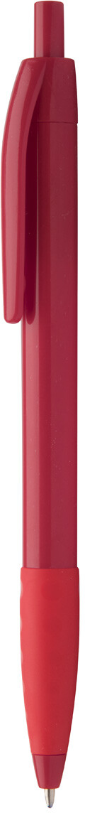 Plastové kuličkové pero se stejně barevným gumovým úchopem, s modrou náplní.