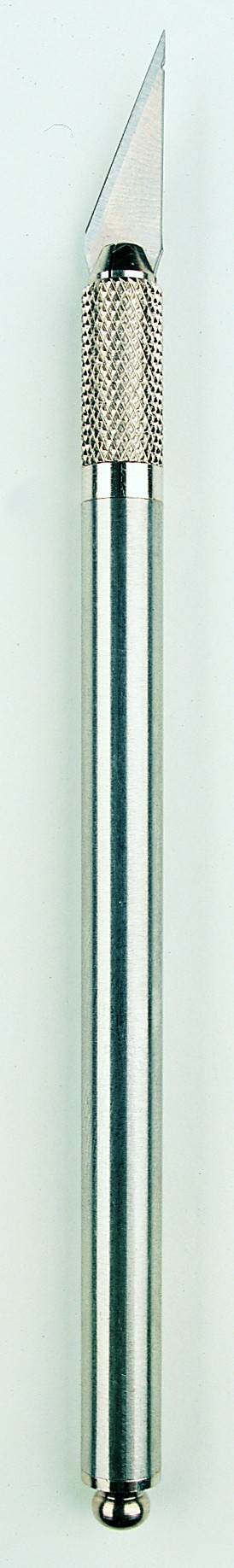 Umělecký řezací nůž (skalpel) velký, nerezová ocel. Délka ostří 37 mm, výška ostří 8 mm, šířka ostí 0,4 mm. Náhradní břity: 4812-00.