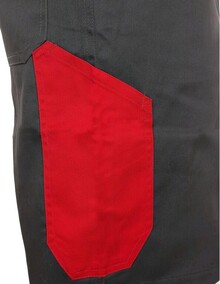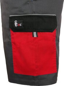 Pánské montérkové kraťasy, pas s poutky na opasek, přední klínové kapsy, boční kapsa s klopou, kapsa na skládací/ svinovací metr, zadní jednoduchá kapsa na pravé straně.
