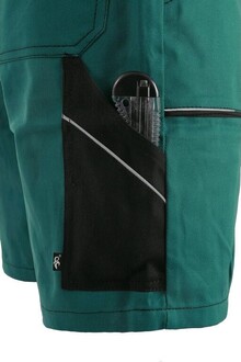 Pánské montérkové kraťasy, pas s poutky na opasek, vzadu do gumy, přední kapsy, boční kapsa na svinovací / skládací metr, boční kapsa na mobil / peněženku, zadní kapsa s klopou.