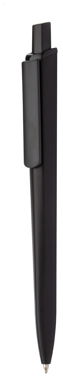 Plastové kuličkové pero s černými částmi a matnou povrchovou úpravou, s modrou náplní.