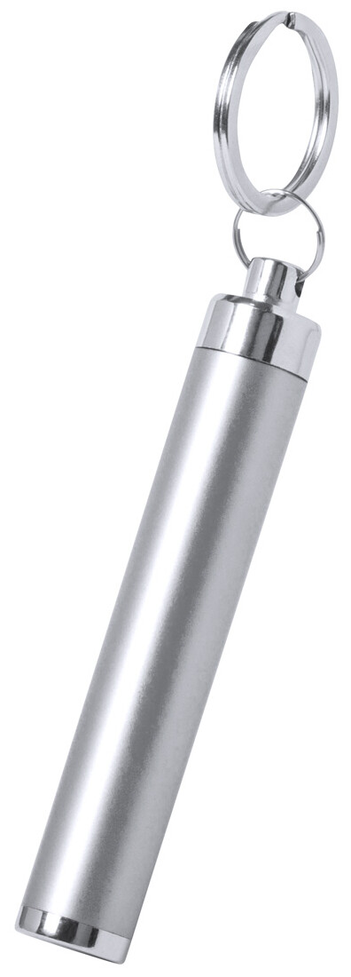 Plastová baterka s 1 LED světlem a kovovým kroužkem na klíče. Vygravírovaná loga na těle baterky svítí. Vč. knoflíkových baterií.