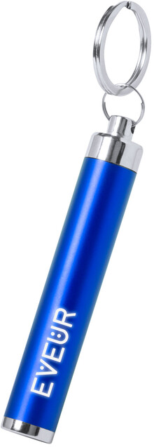 Plastová baterka s 1 LED světlem a kovovým kroužkem na klíče. Vygravírovaná loga na těle baterky svítí. Vč. knoflíkových baterií.