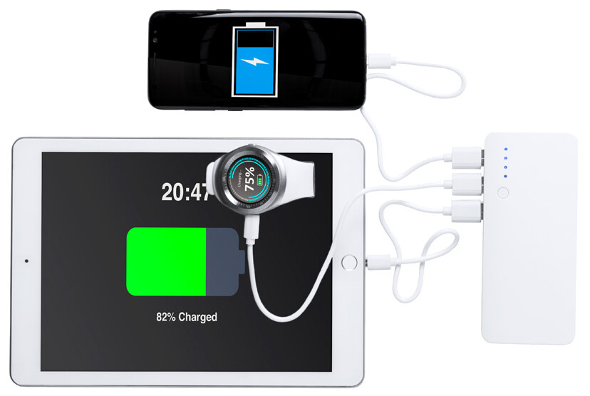 Plastová USB power banka se 3 nabíjecími porty a 10000 mAh baterií. Bez nabíjecího kabelu.