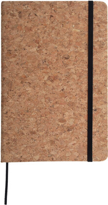Blok A5 s deskami z přírodního korku s 80 čistými listy a gumičkou.