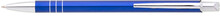 Tenká kovová propiska SOTTI v modré barvě s chromovými doplňky a třemi tenkými proužky. Náplň X-20, modře píšící.