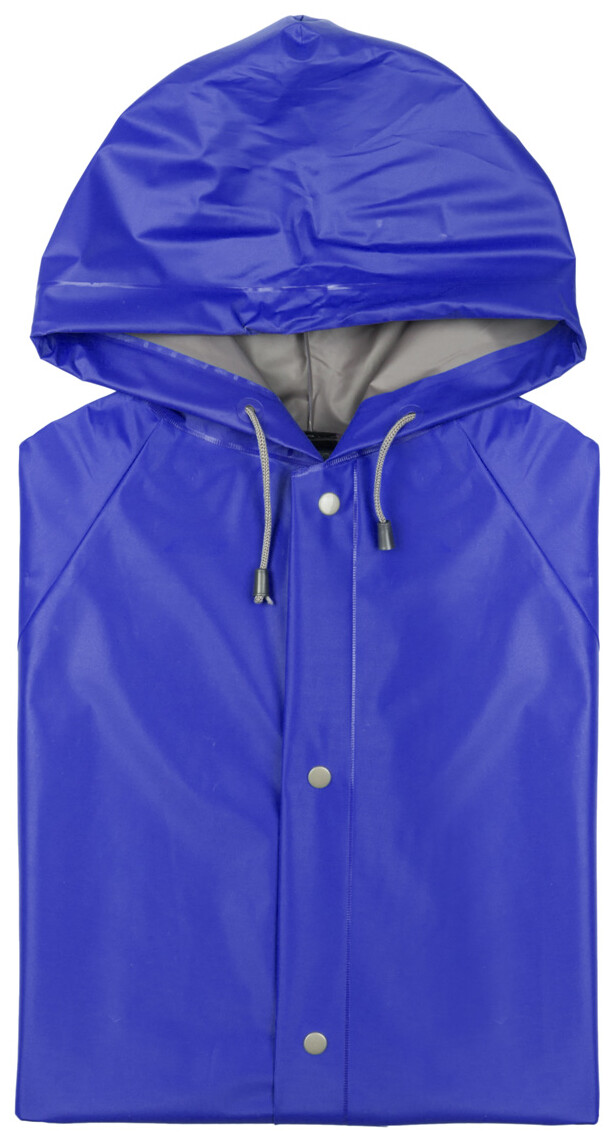 Pláštěnka s kapucí z odolného PVC s žáruvzdornou povrchovou úpravou. Se zapínáním na knoflíky a dvěma předními kapsami.