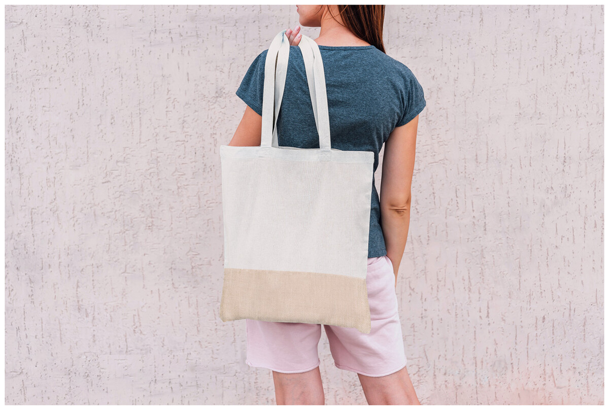Nákupní taška z juty a bavlny s dlouhými uchy, 120g/m2.