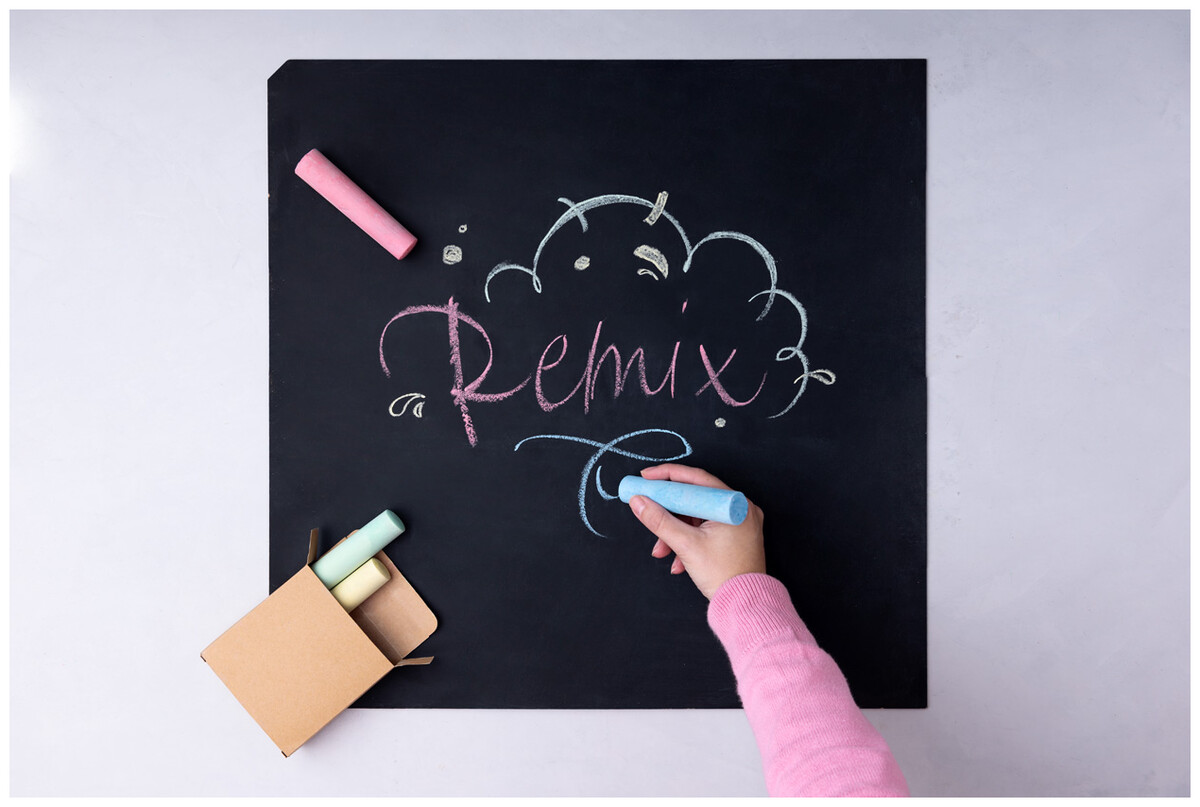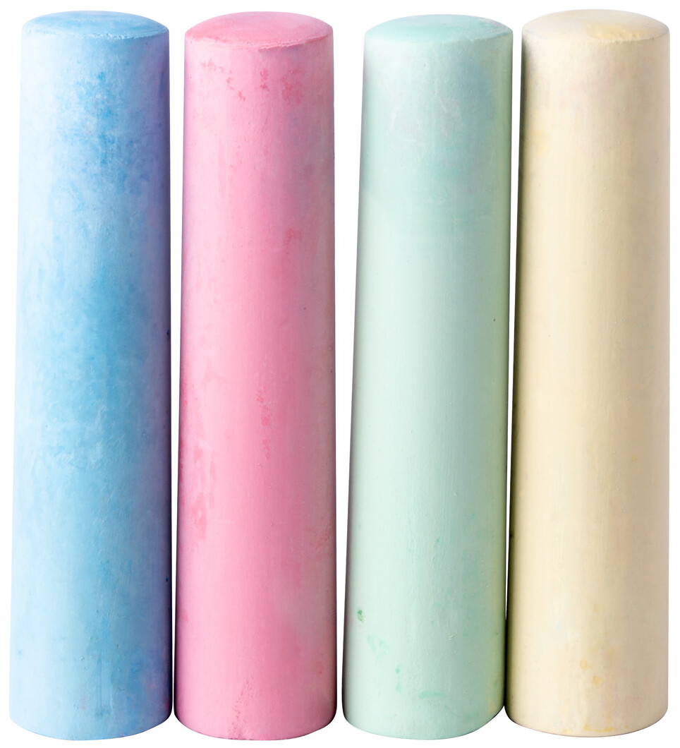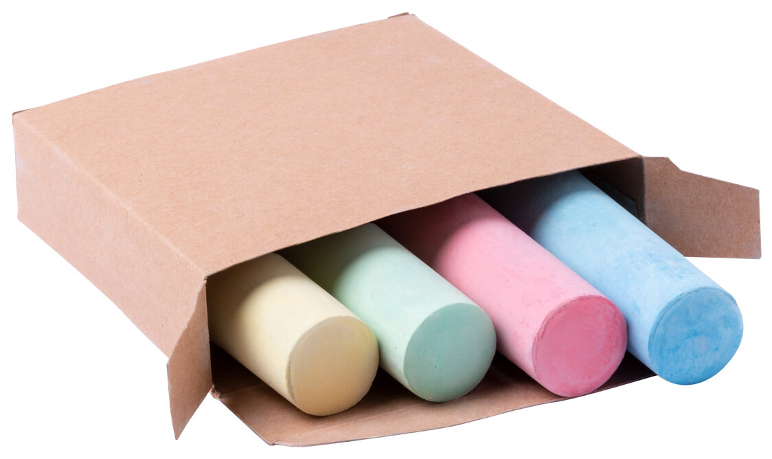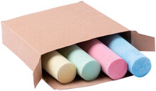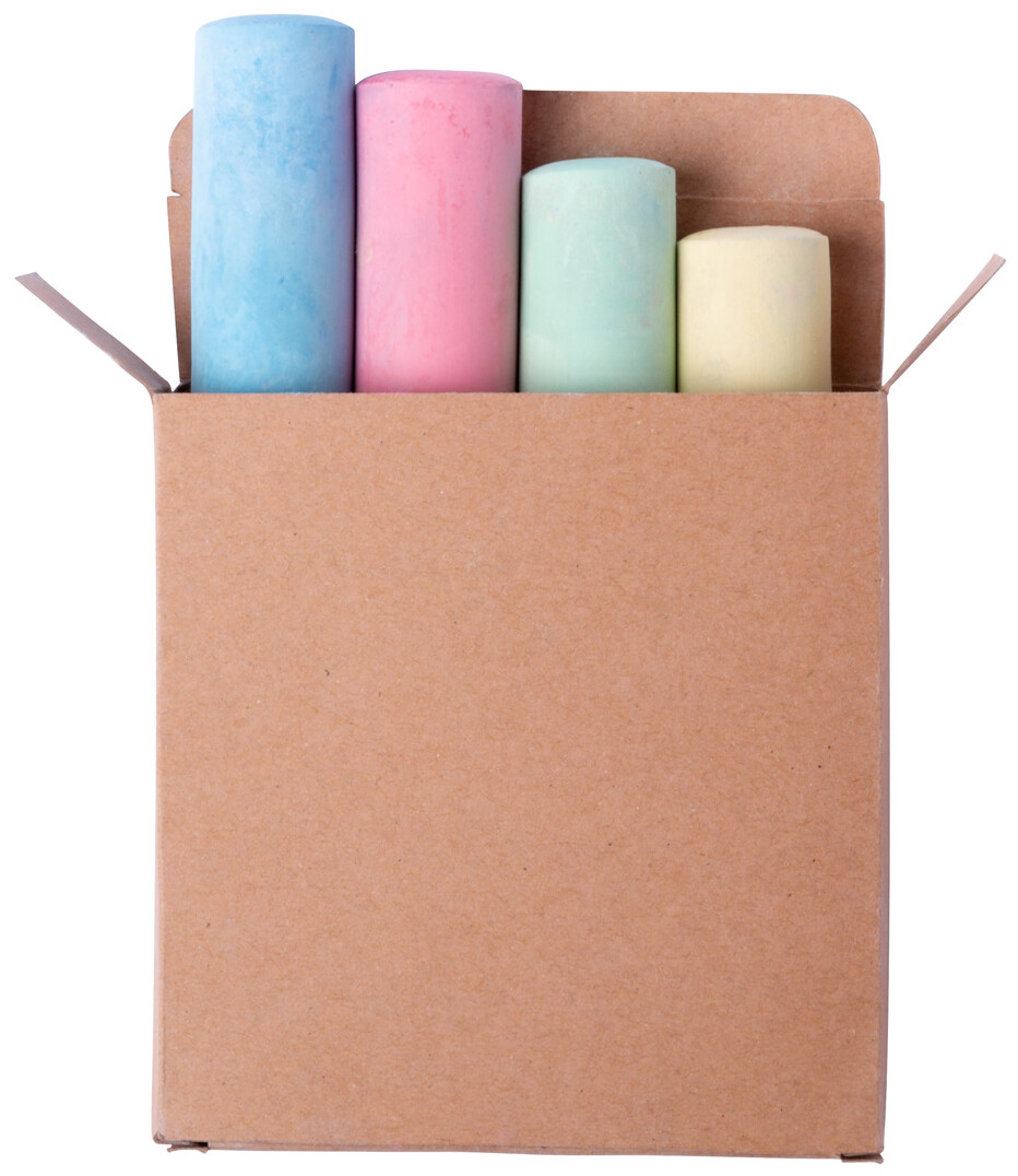Barevné křídy (4 ks) v krabici z recyklovaného papíru.
