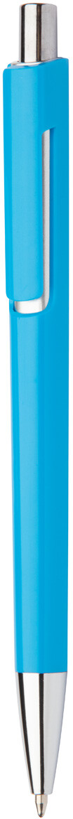 Plastové kuličkové pero s barevným tělem a chromovými částmi, s modrou náplní.