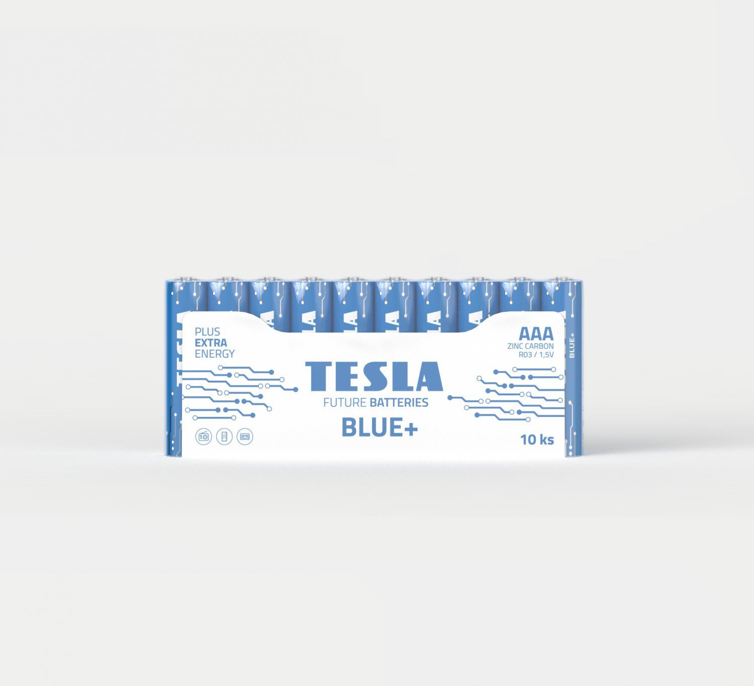 Řada TESLA BLUE+ zahrnuje zinko-uhlíkové baterie se základním napětím 1,5 V. Tyto baterie typu AAA jsou vhodné především do zařízení s krátkodobým odběrem nízkého množství proudu, například do televizních ovladačů, budíků, časovačů či nástěnných hodin. Hlavním benefitem této řady je její cenová dostupnost a dlouhá výdrž.