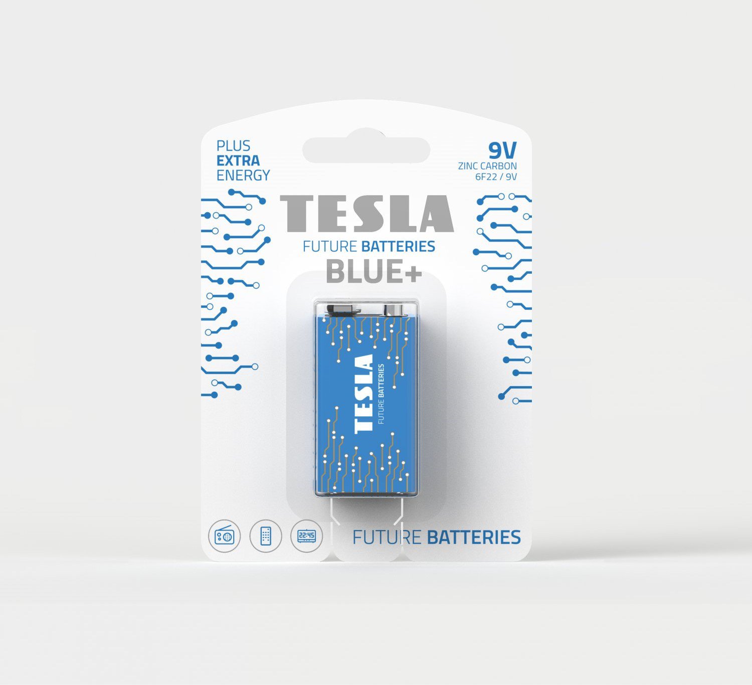 Řada baterií TESLA BLUE+ s napětím 9 V zahrnuje zinko-uhlíkové baterie se základním výkonem. Tyto baterie jsou vhodné zejména do zařízení s krátkodobým odběrem nízkého množství proudu, například do televizních ovladačů či nástěnných hodin a dalších zařízení. Hlavním benefitem této řady je její cenová dostupnost a dlouhá výdrž.