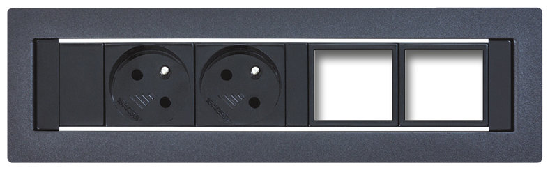 Konfigurovatelný pevný panel, 2x el. zásuvka, 2x volný slot pro 2 až 4 konektory KPP 4 černá