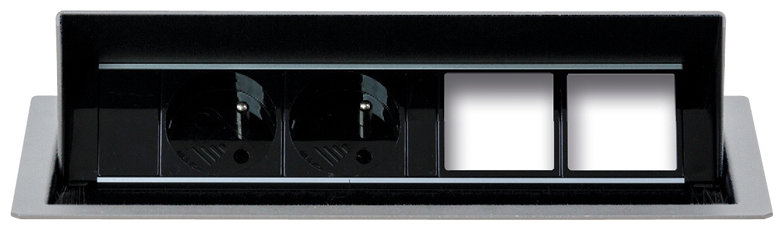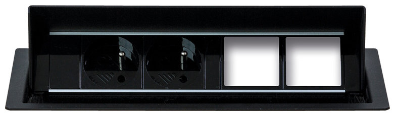 Konfigurovatelný výklopný panel, 2x el. zásuvka, 2x volný slot pro 2 až 4 konektory