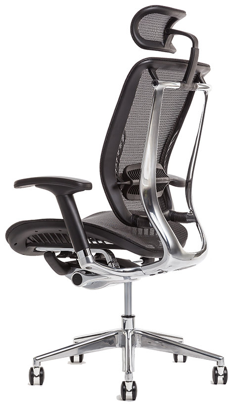 - Židle čalouněná samonosnou síťovinou zajišťující celodenní větrání zad