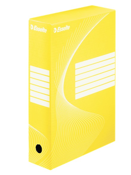 Archivační krabice jsou vhodné pro ukládání dokumentů do formátu A4. Dokumenty jsou vždy snadno přístupné a zároveň dobře chráněné. Otvor pro snadnou manipulaci i potisk pro popis na delší i kratší straně umožňují skladovat krabice ve svislé i vodorovné poloze. Pro výraznější odlišení je možné využít krabice v barevném provedení. Krabice je možné používat samostatně nebo v kombinaci s archivačními kontejnery. Kapacita krabice je až 2000 listů formátu A4 (pro 200 mm). Dodávány ve 4 provedeních s různou šířkou hřbetu, šíře hřbetu 8 cm. Balení 25 ks. Barva: žlutá.
