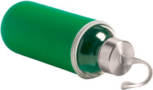 Skleněná láhev s popruhem na uzávěru a barevným neoprenovým krytem. 420 ml. Nevhodné pro sycené nápoje.