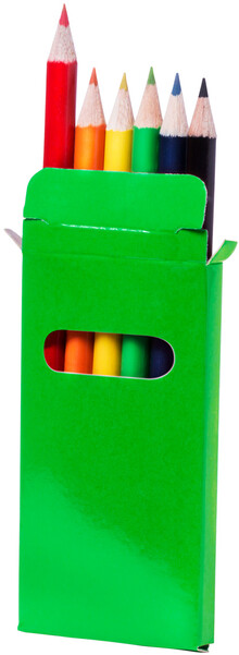 Dřevěné pastelky (6 ks) v barevné papírové krabičce.