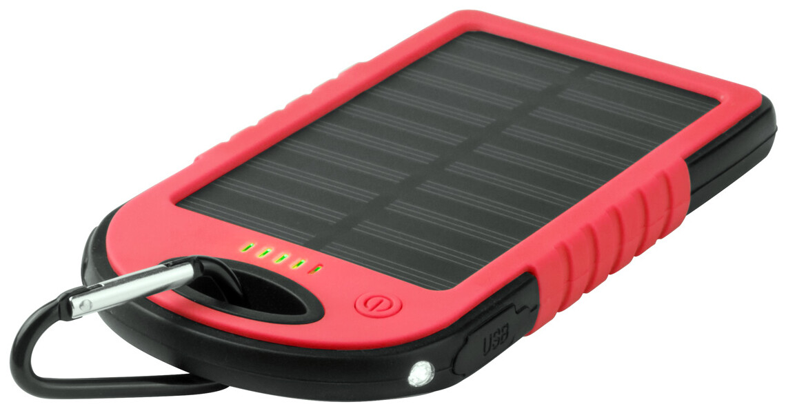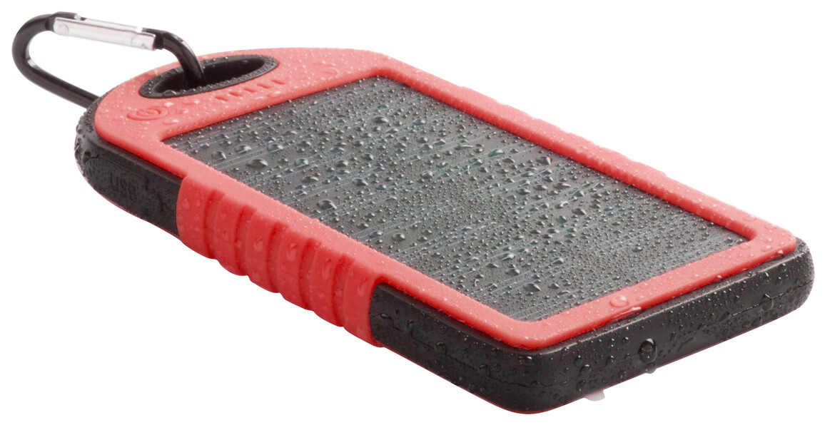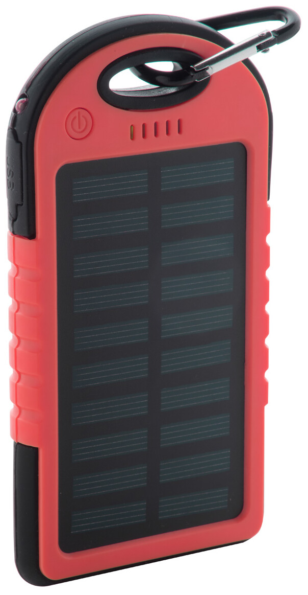 Plast/silikonová power banka s 4000 mAh baterií, solárním nabíjením a 1 LED diodou. Dodáváno vč. USB mikro kabelu.