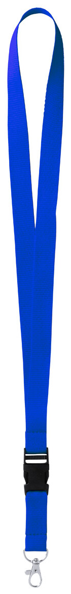 Polyesterový lanyard s oddělitelnou kovovou karabinkou.
