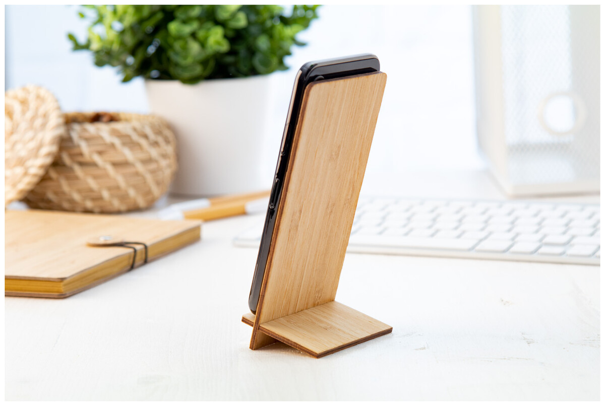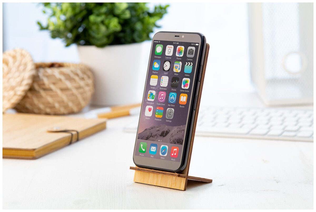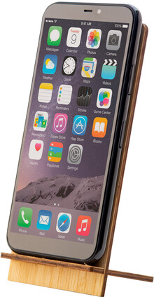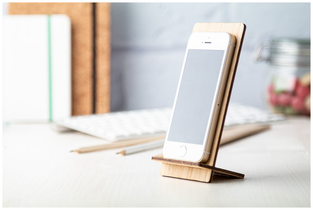 Stojánek na mobil z bambusové překližky. Dodáváno rozložené.
