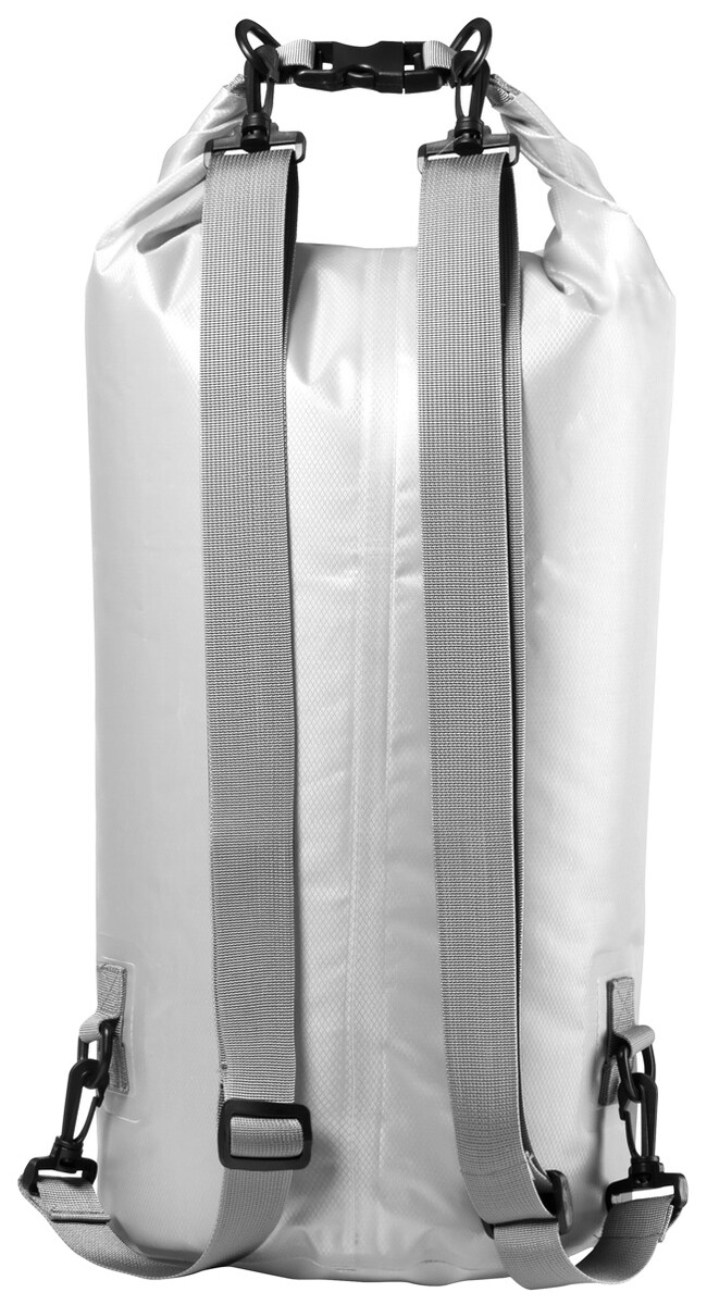 Voděodolný lodní batoh, ripstop materiál, s nastavitelnými ramenními popruhy a plastovou přezkou.