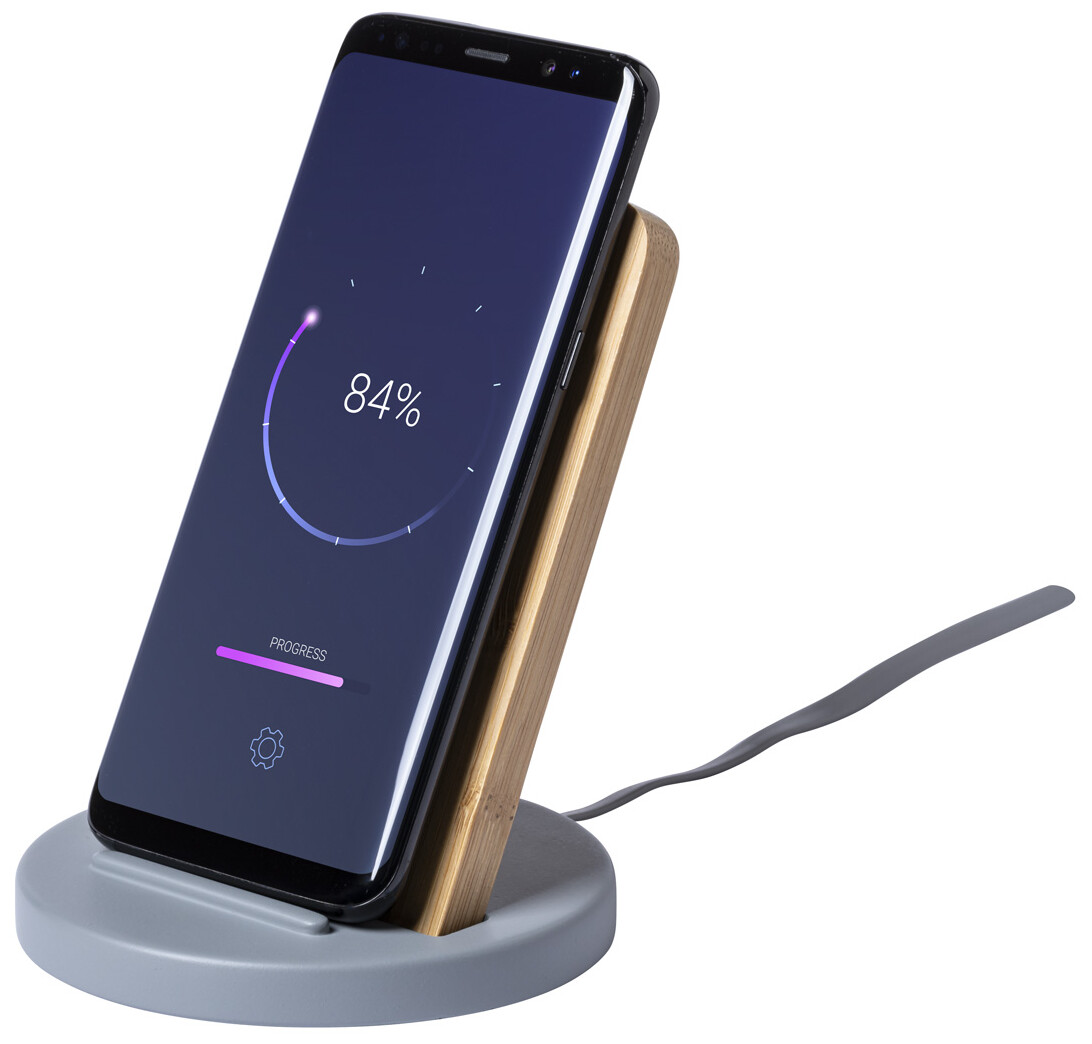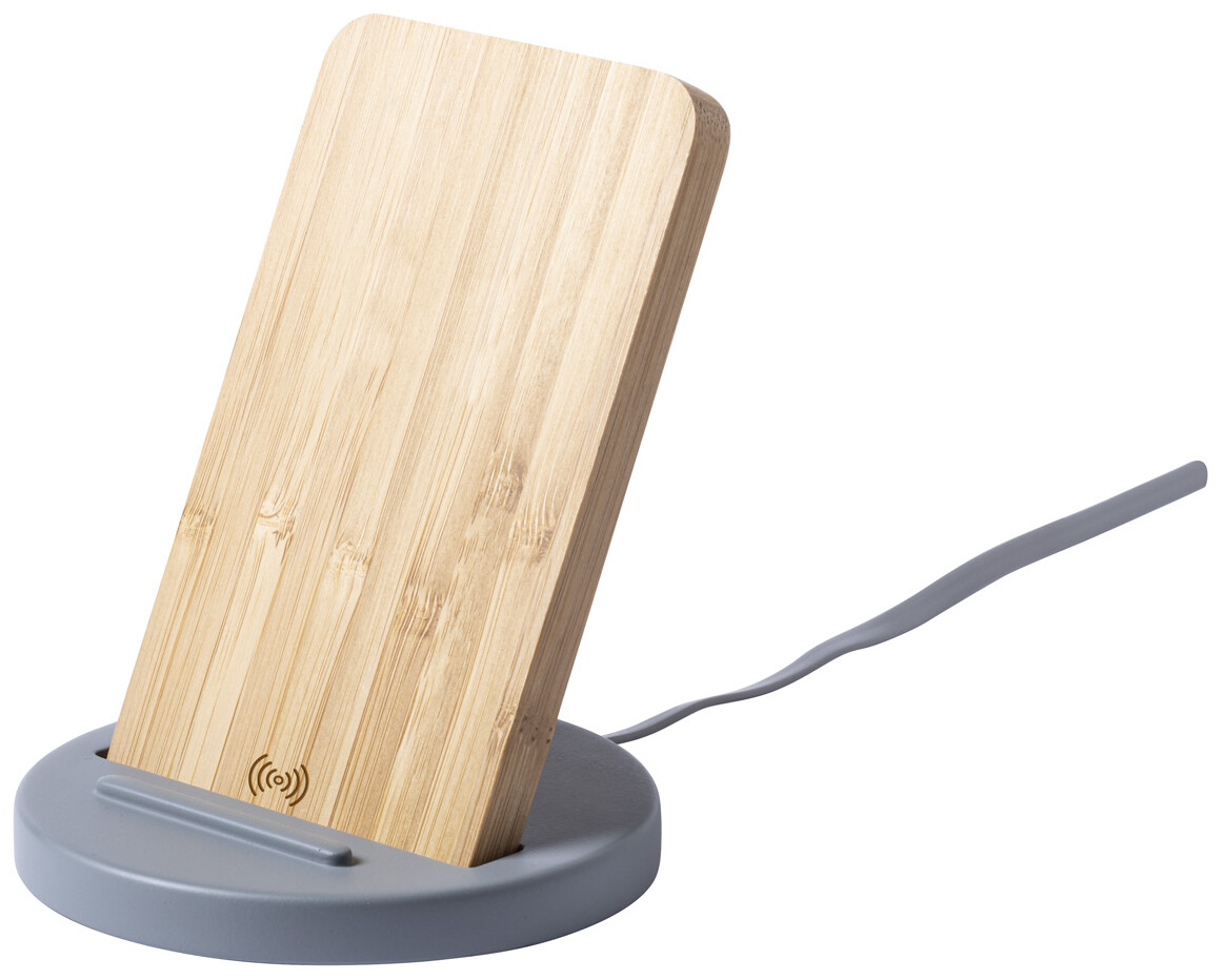Stojánek na mobil s bezdrátovou nabíječkou Chemek, šedá, přírodní
