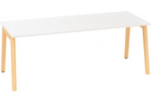 ALFA ROOT je kancelářský stůl postavený na masivním jasanovém podnoží. Kovové spojovací prvky jsou v bílé barvě RAL9010.