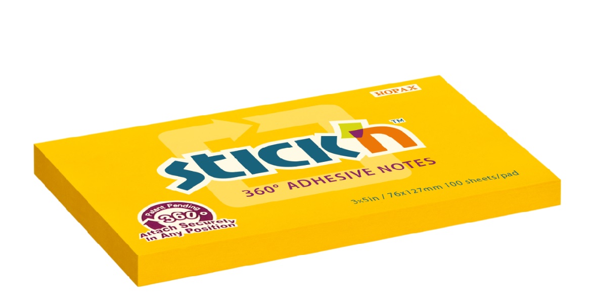 Samolepicí bloček Stick'n by Hopax 360°, 76 x 127 mm, oranžový, 100 lístků