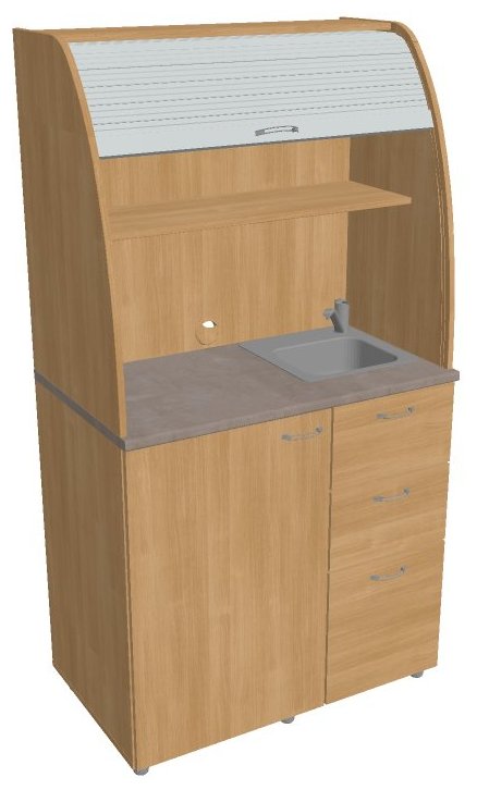 V provedení se dřezem je hloubka dvou vrchních zásuvek zkrácena právě z důvodu umístění dřezu.