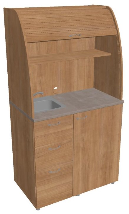 V provedení se dřezem je hloubka dvou vrchních zásuvek zkrácena právě z důvodu umístění dřezu.