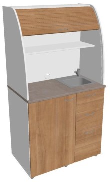 V provedení se dřezem je hloubka dvou vrchních zásuvek zkrácena právě z důvodu umístění dřezu