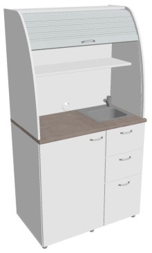 V provedení se dřezem je hloubka dvou vrchních zásuvek zkrácena právě z důvodu umístění dřezu