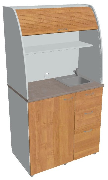V provedení se dřezem je hloubka dvou vrchních zásuvek zkrácena právě z důvodu umístění dřezu