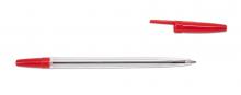 Jednorázové plastové kuličkové pero s průhledným tělem pro kontrolu množství náplně. Hrot 1,00 mm. Barva náplně: červená.