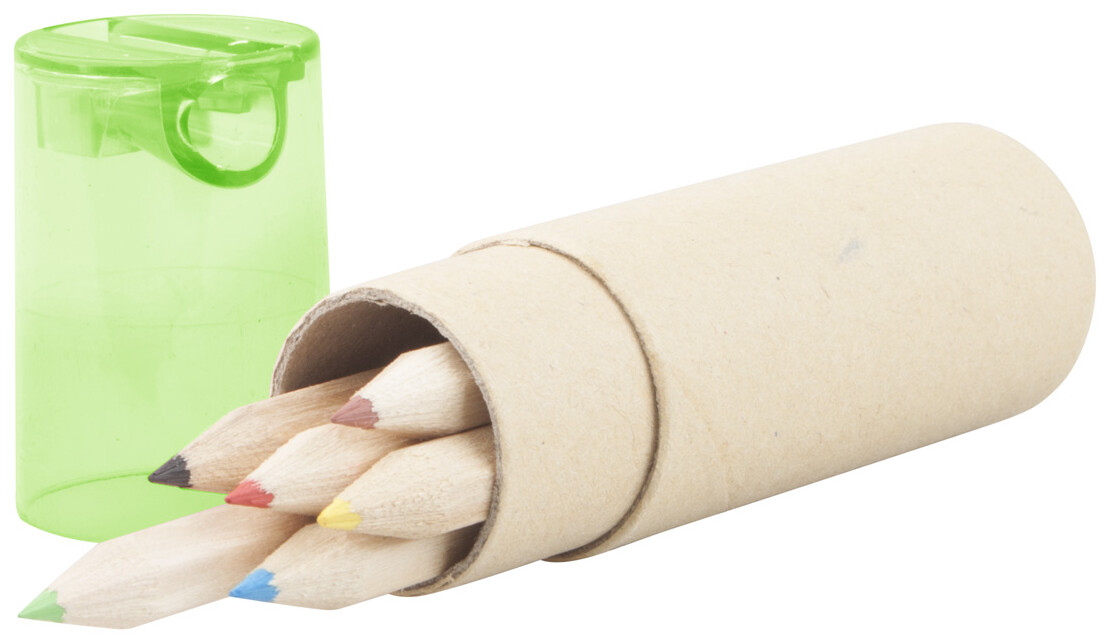 Sada 6ks barevných tužek s ořezávátkem v papírové krabičce.