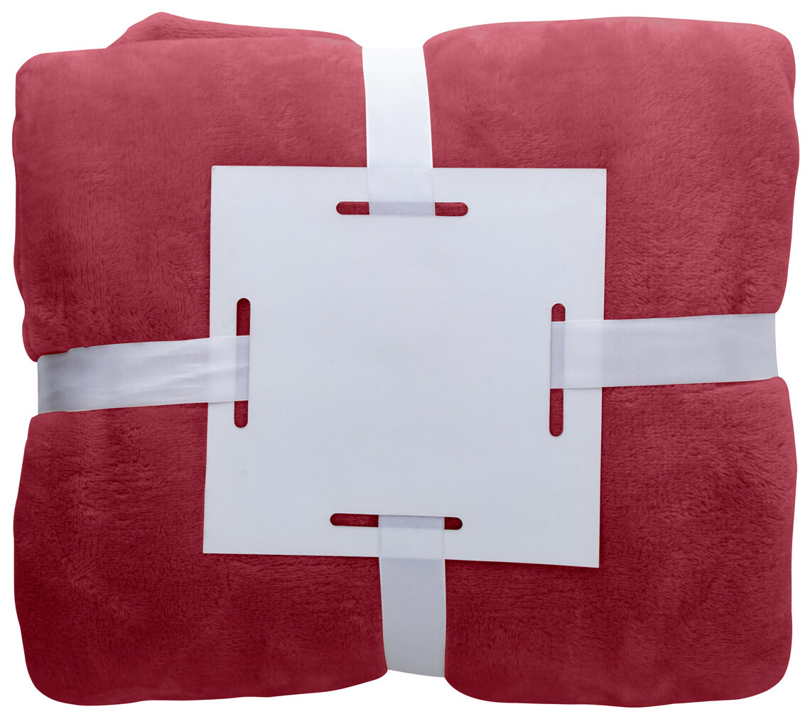 Flanelová fleecová deka, 280 gr/m2. Zabaleno bílou stuhou s potisknutelnou papírovou kartou.