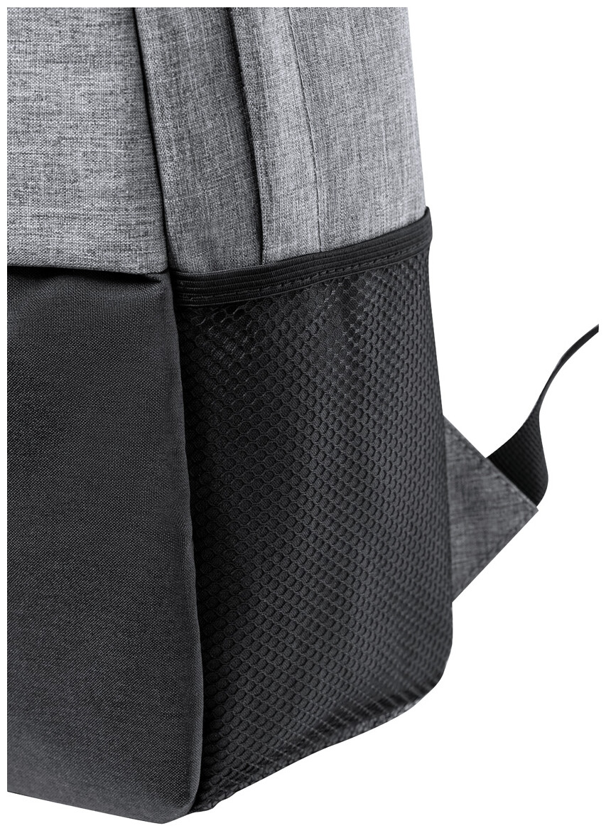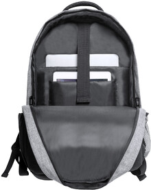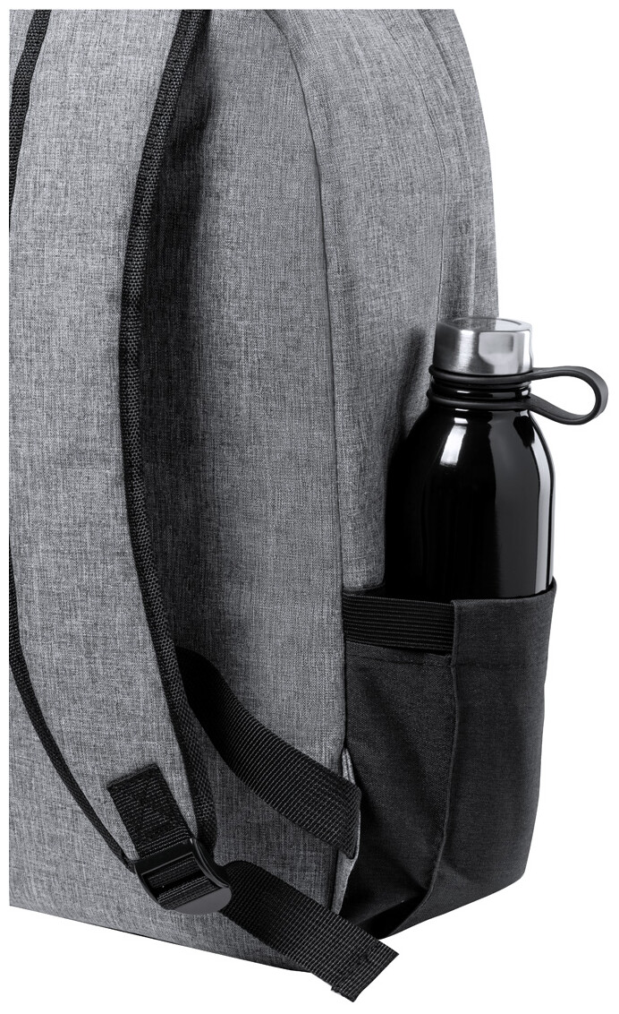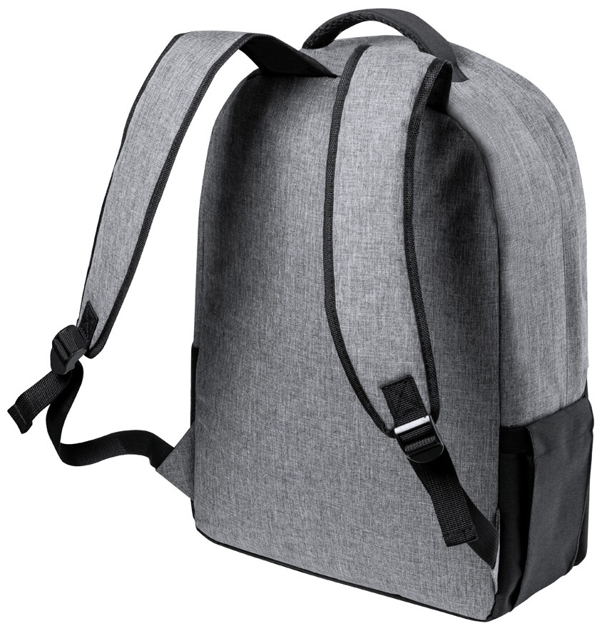 Dvoubarevný batoh RPET s hlavní kapsou na zip, polstrovanou přihrádkou na notebook (15 ") a tablet (10"), postranními kapsami, polstrovanými zády a ramenními popruhy. 600D RPET polyester.