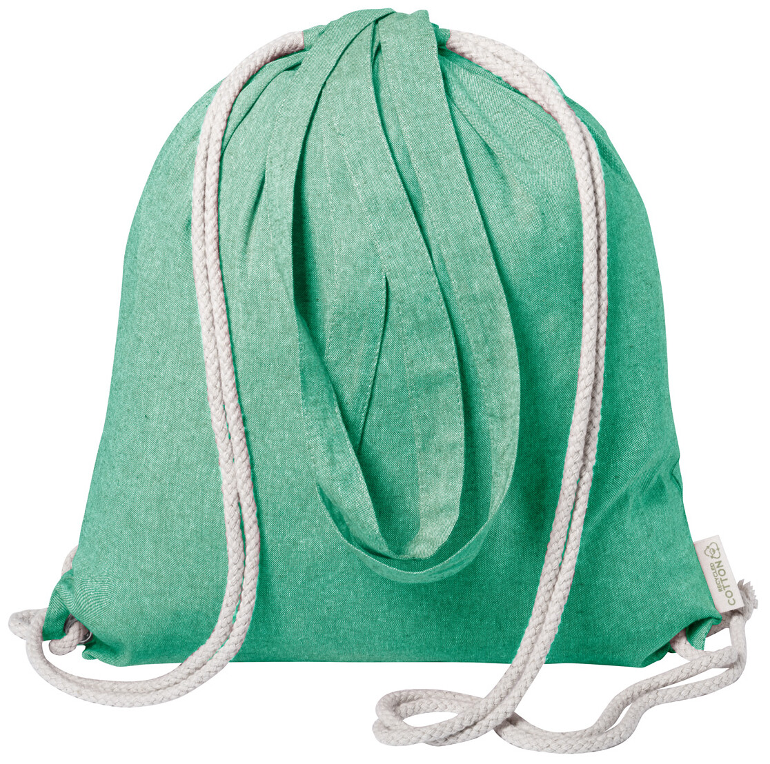 Vak na stahování šňůrkou z recyklované bavlny se silnými pletenými šňůrami a dlouhými uchy. Lze jej také použít jako nákupní tašku. 100% recyklovaná bavlna, 140 g/m2.