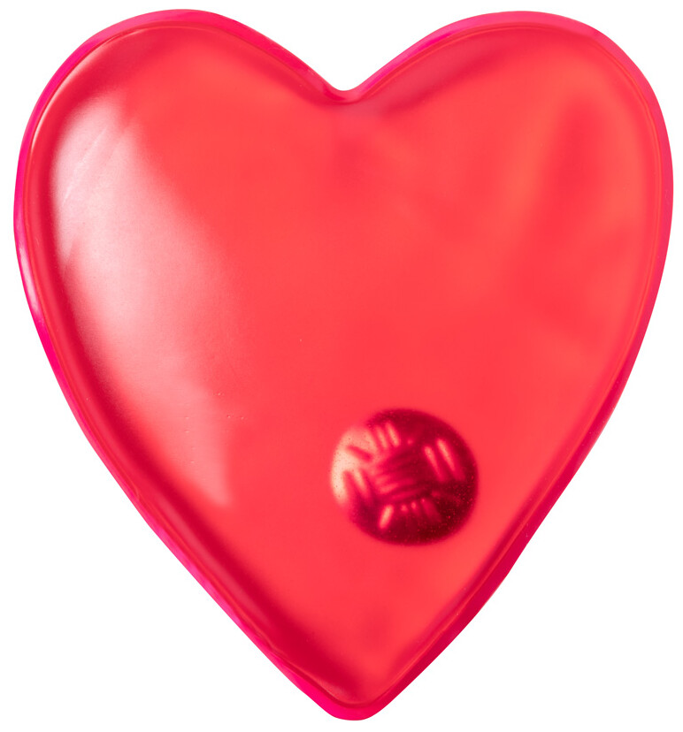Zahřívací opakovaně použitelný polštářek ve tvaru srdce.
