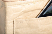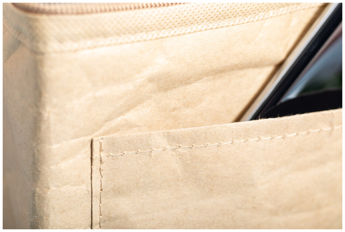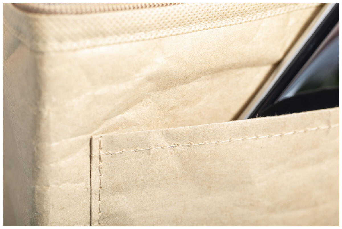 Chladící taška na zip z polaminovaného recyklovaného papíru s hliníkovou výplní, pro 6 ks plechovek 0,33 l. S přední kapsou ideální pro potisk.