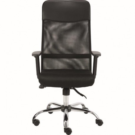 Velmi oblíbená kancelářská židle s výškově stavitelnými područkami a synchro mechanikou. Vysoký síťovaný opěrák s podhlavníkem je v horní části potažen černou koženkou, sedák je opatřen prodyšnou černou látkou.